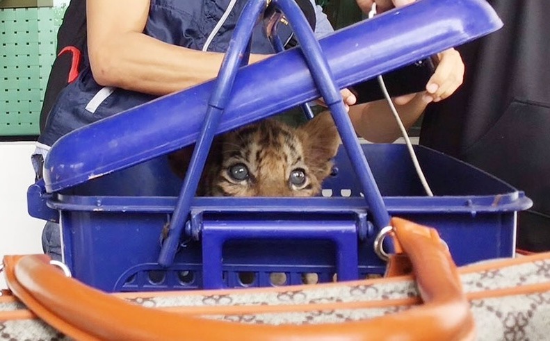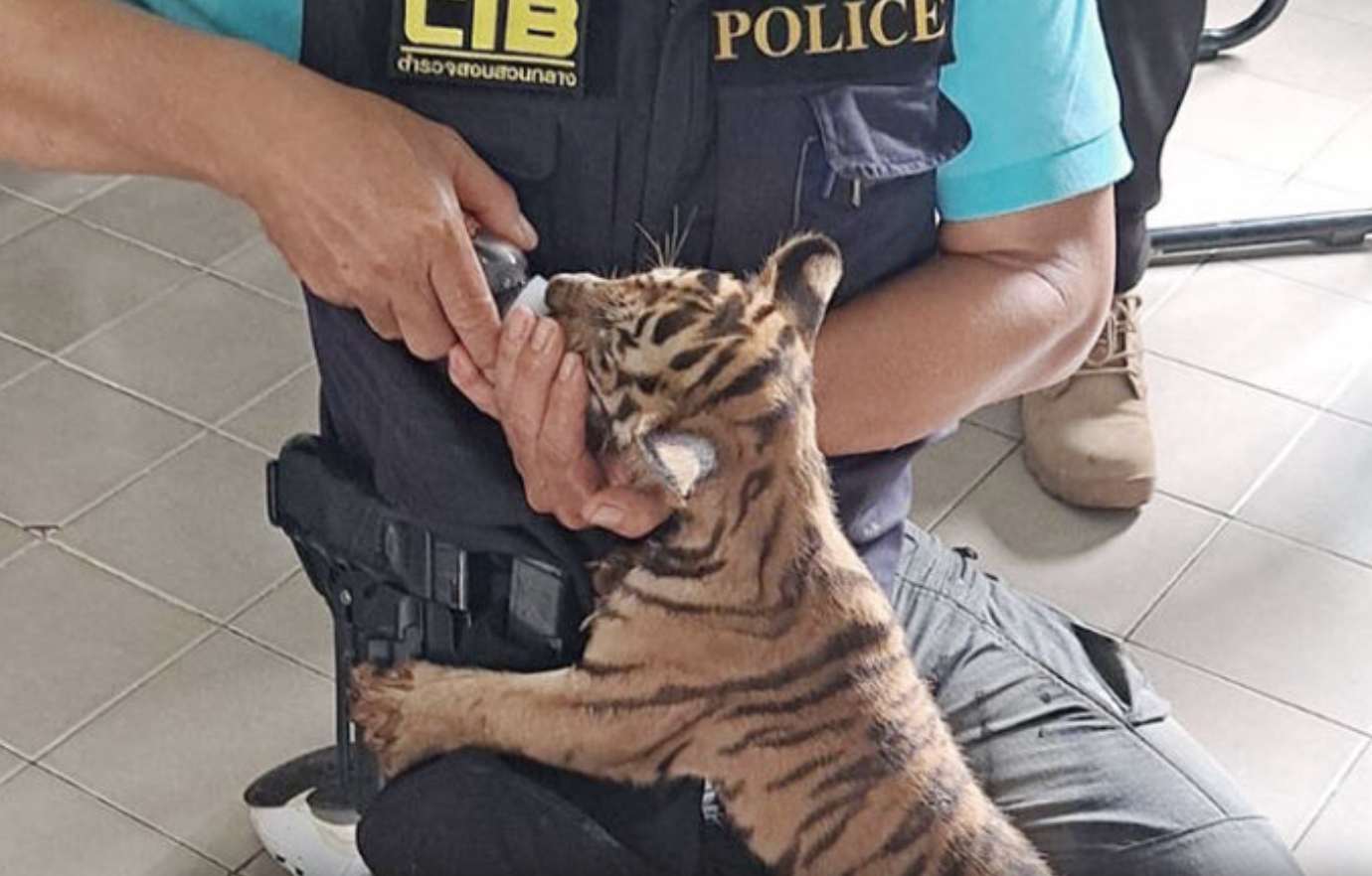 Police recovered evidence including a plastic basket, two mobile phones and the one-month-old tiger cub in question. When questioned, the suspect Mr Ho claimed he had bought the cub purpose-bred from a tiger farm in Vietnam, but denied any involvement in wildlife trafficking. Ms Sawitree went further, saying she had no idea what was in the crate at all. She was merely, she claimed, carrying the crate to “a customer” for a Laotian acquaintance named Ton. Their stories didn’t hold water.
