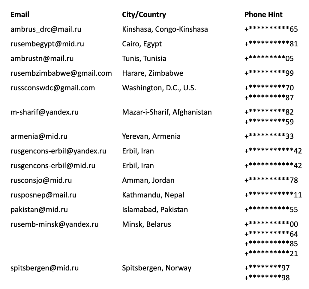 Over 190 distinct Russian diplomatic email addresses have been breached, from 90 countries and territories, from 2011 to 2025.